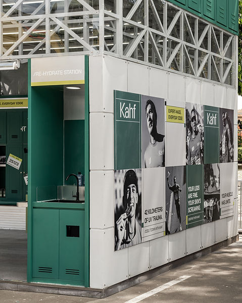 Designed around real post-run needs, the space brings together practical facilities and an engaging spatial experience. An open, welcoming structure, functional refresh zones, and a bold modular locker identity come together to reflect a sporty urban vibe.